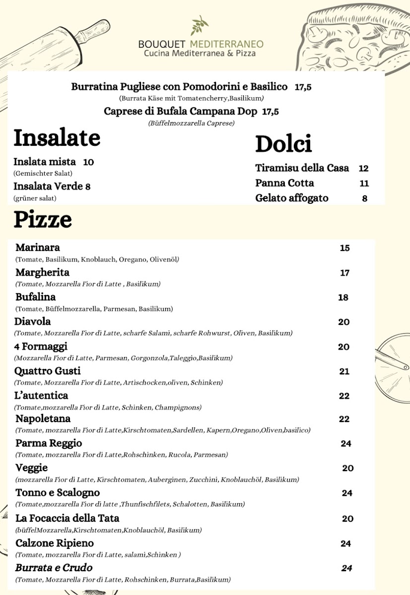 Welcome to Bouquet Mediterraneo, a hidden gem nestled in Sevelen, Switzerland, where authentic Neapolitan cuisine comes to life. Located at Bahnhofstrasse 46, this charming eatery has captivated diners with its delightful ambiance and dedicated service.